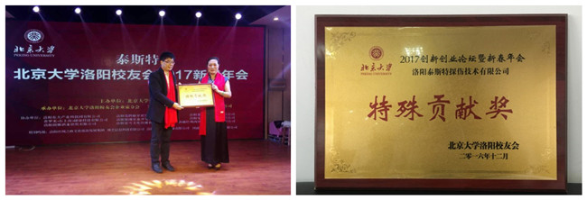 年會上洛陽泰斯特榮獲北大洛陽校友會殊貢獻獎。